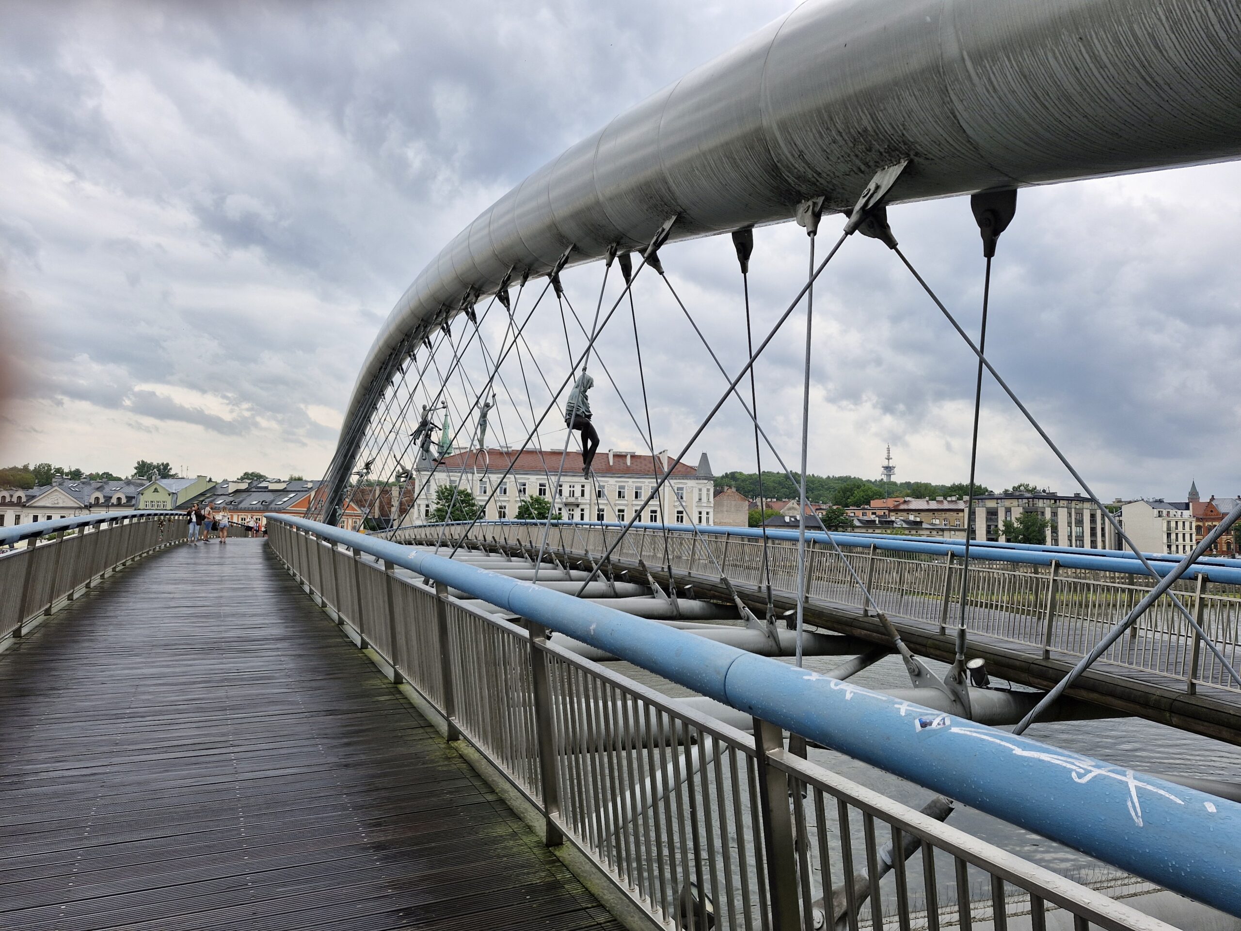 Der Holzsteg Vater Bernatka (Kładka Ojca Bernatka) in Krakau ist eine moderne Fußgängerbrücke über die Weichsel mit Skulpturen von Akrobaten des Künstlers Jerzy Kędziora.